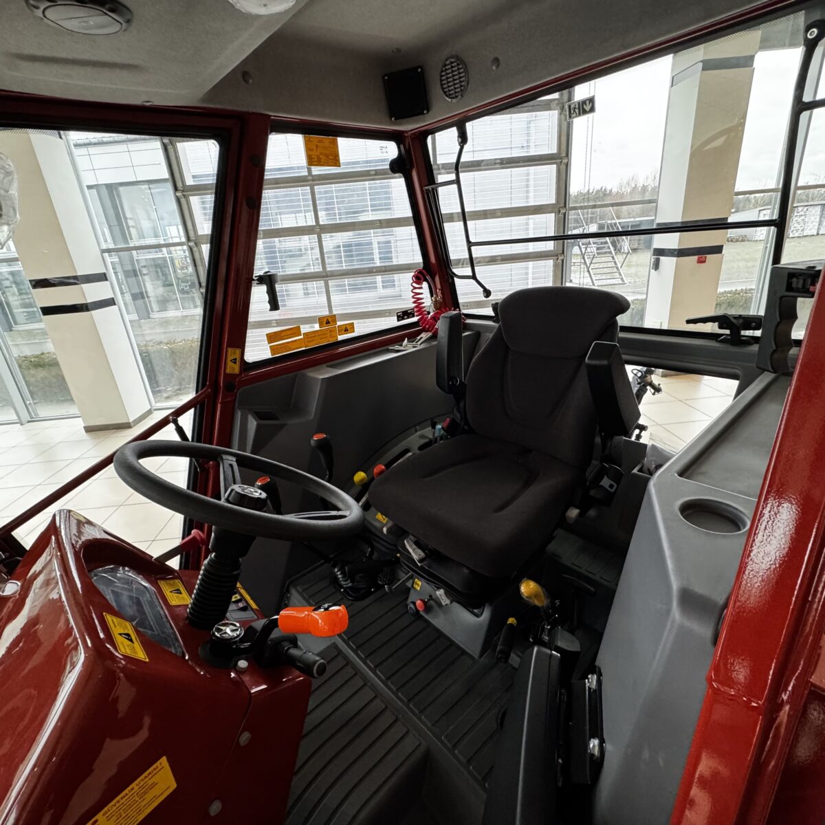 - Простора кабіна з цифровою панеллю приладів і регульованим кермом — усе продумано для зручності оператора.
